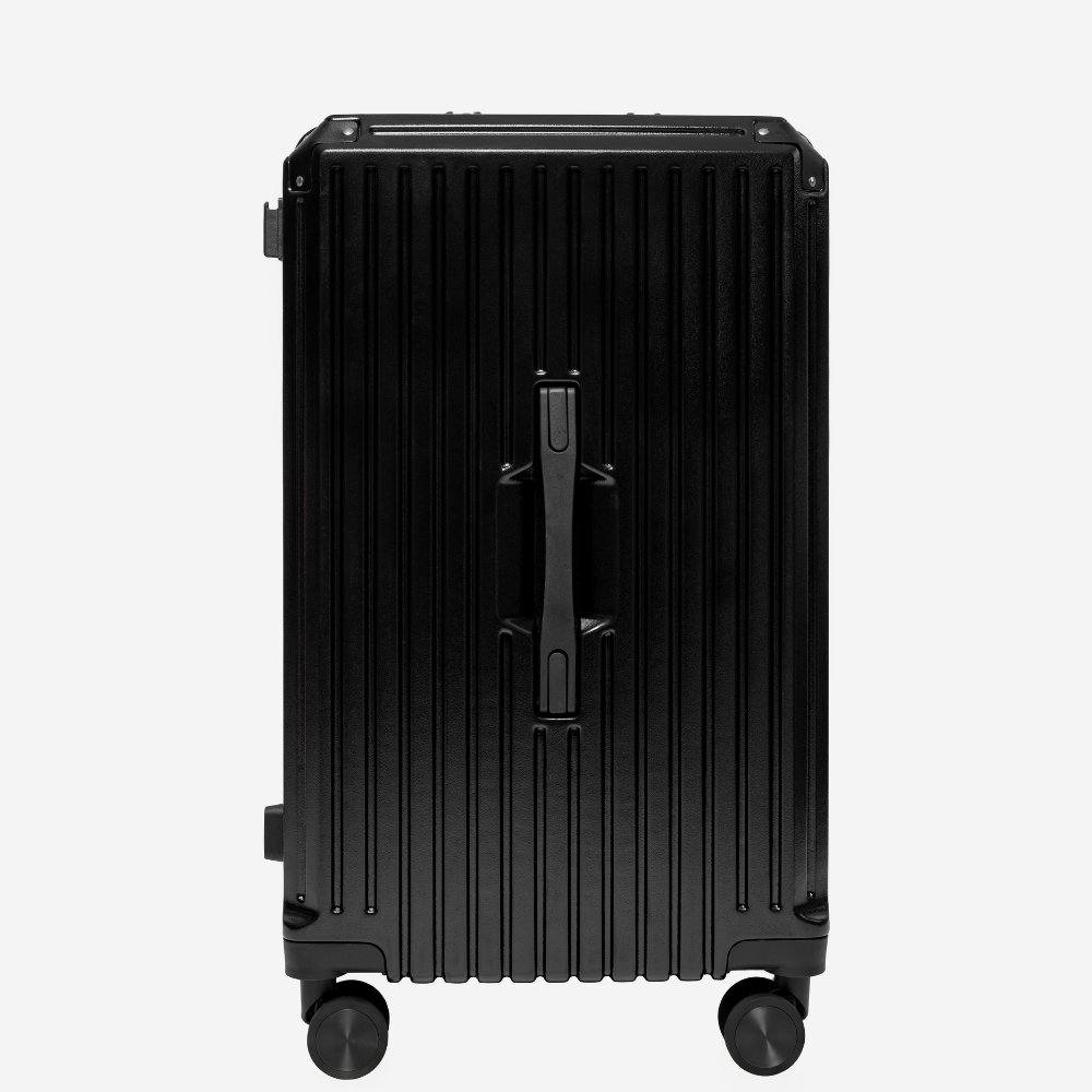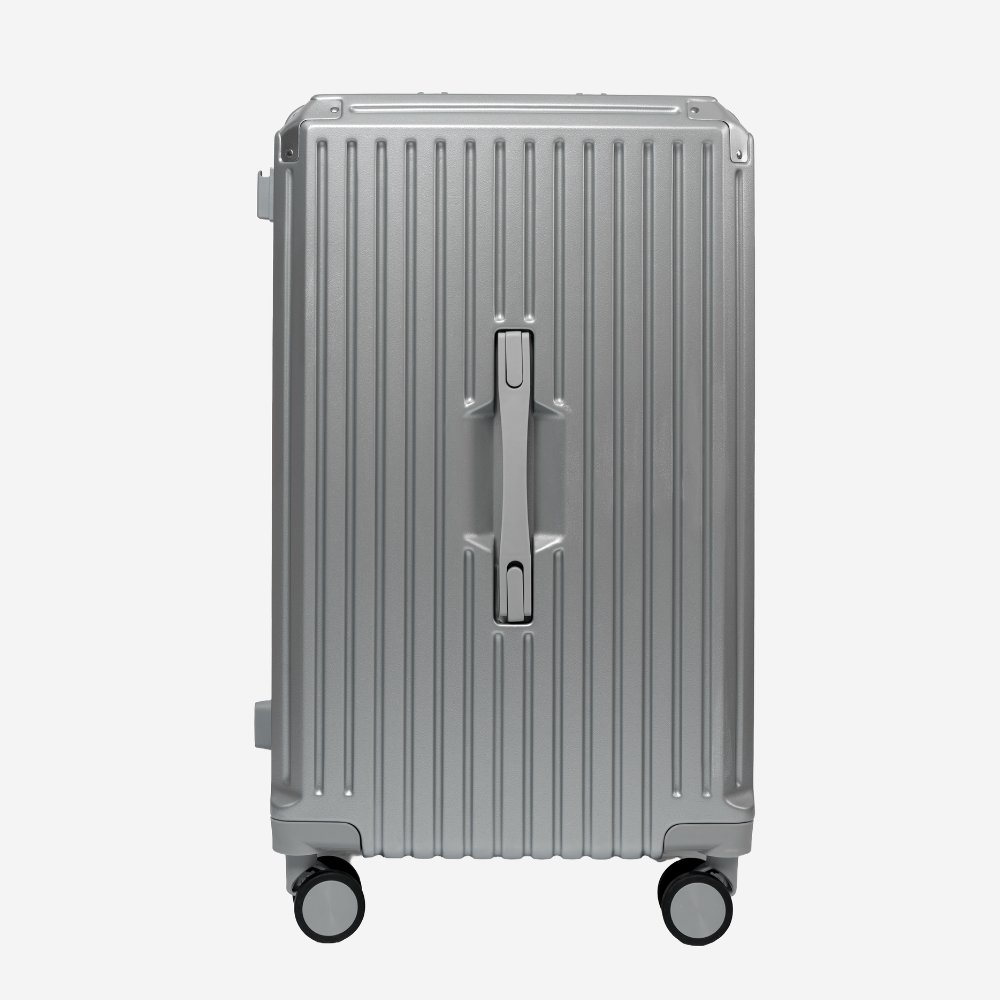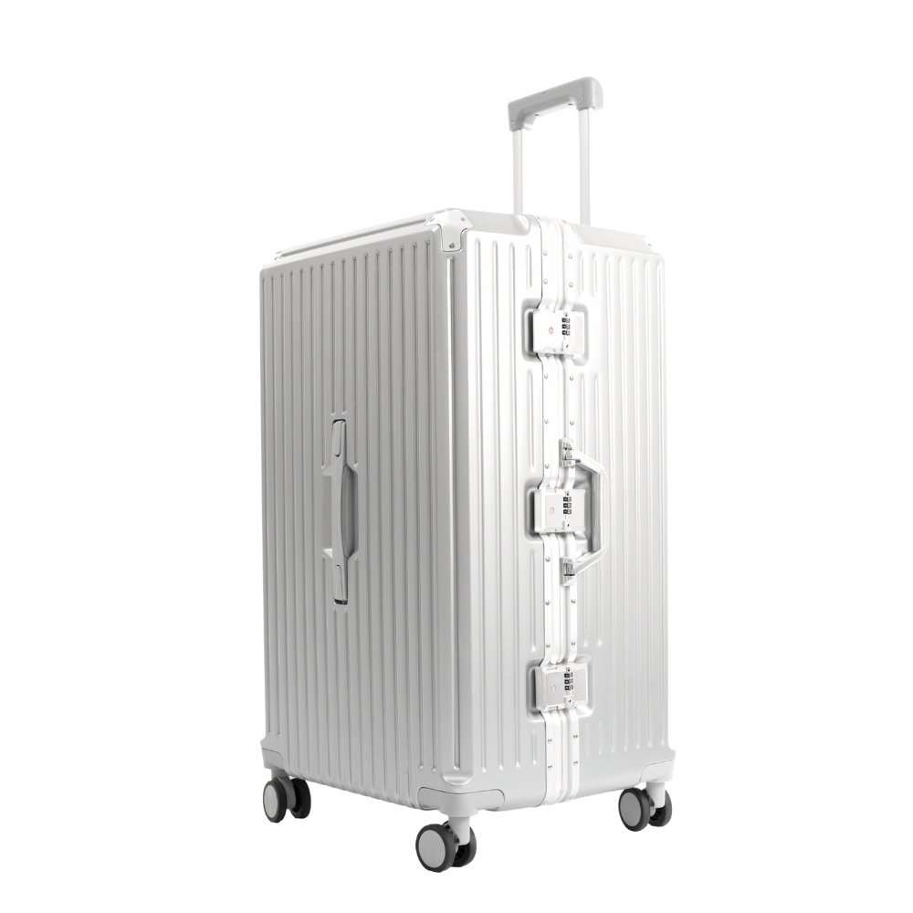 Vali bọc khung nhôm nguyên khối với thiết kế sang trọng, tinh tế. Có nhiều đinh tán chịu lực giúp vali cứng cáp hơn.