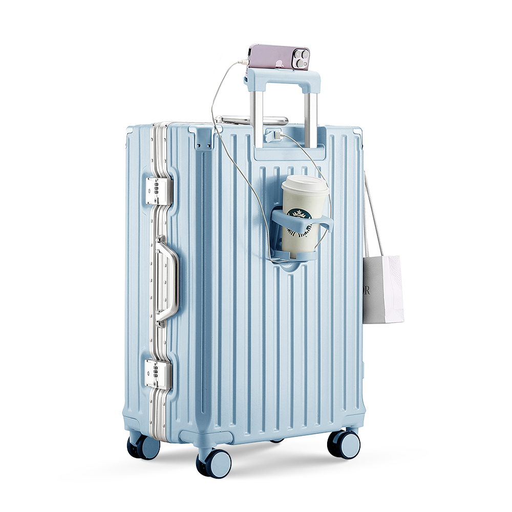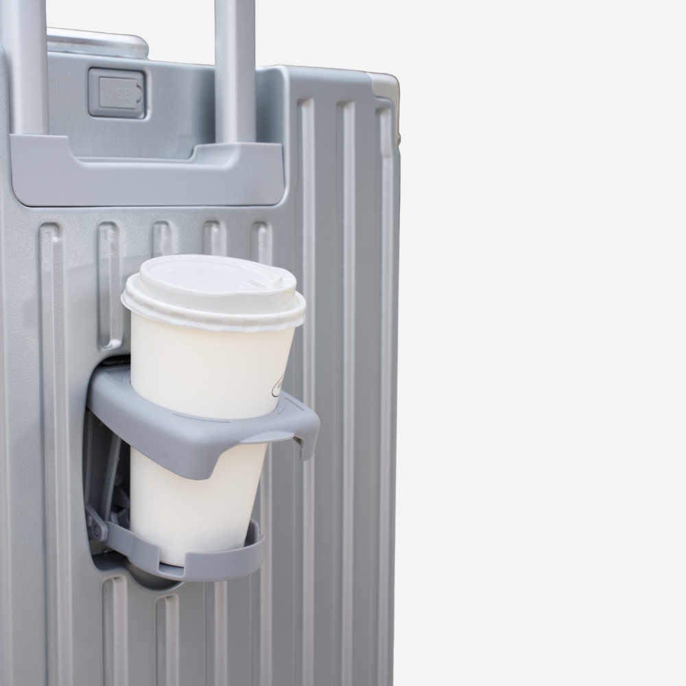 Giá đựng chai, cốc, ô dù trên thân vali, mang lại trải nghiệm du lịch tuyệt vời